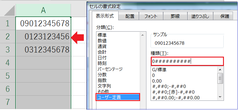 「先頭の0」を表示する