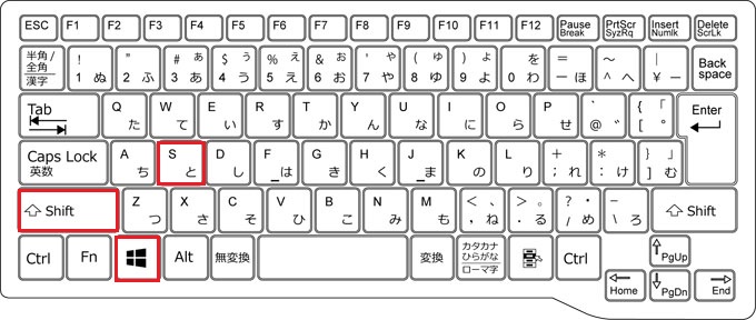 [Windows]+[Shift]+[S]を押します。 - 必要な範囲をマウスで囲みます。